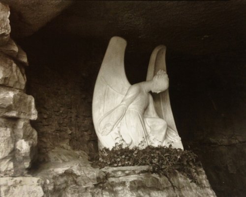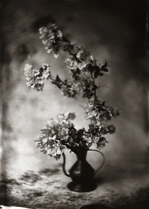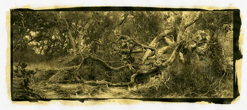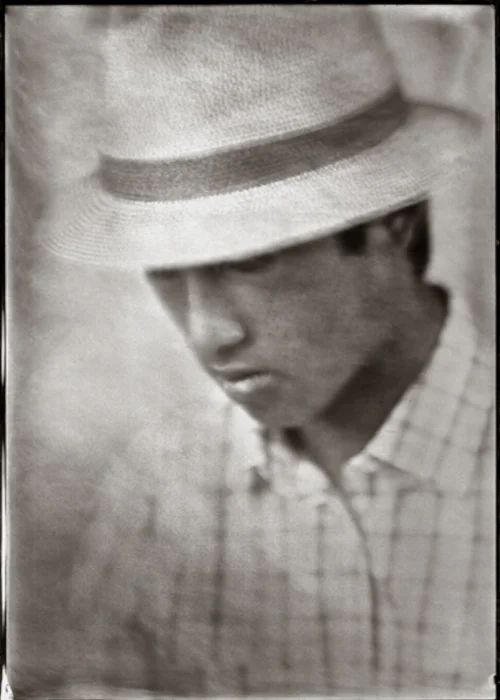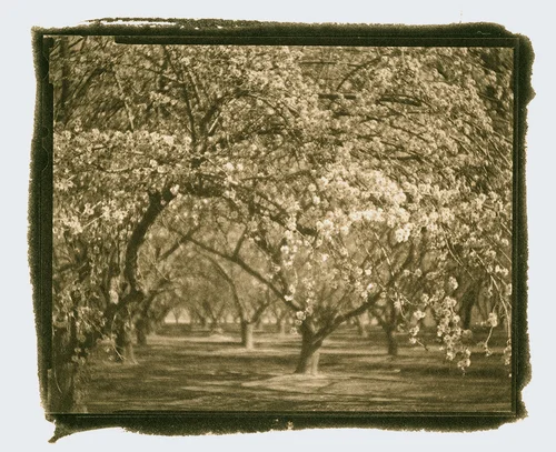 Platinum prints are contact prints in which the final image is the same size as the negative. It is a completely hand-made process in which a platinum and palladium salt solution is brushed on a specially selected art paper. The negative is exposed to ultra violet light whereby the image is reduced back to a metallic state. It is then carried through a series of cleaning baths. The finished print that emerges from the final bath consists of particles of precious metals permanently embedded in the fibers of the print paper