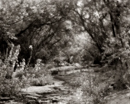 Creative process: Images are captured on film using large format cameras, then scanned and a digital file is created. After digital processing using editing software for best resolution and tonality, the image is then printed using pigmented based ink. Pigment ink technology is used because of their proven decades long longevity. The print is placed on water color paper. Because of their longevity, the process is often called “archival” pigment printing.